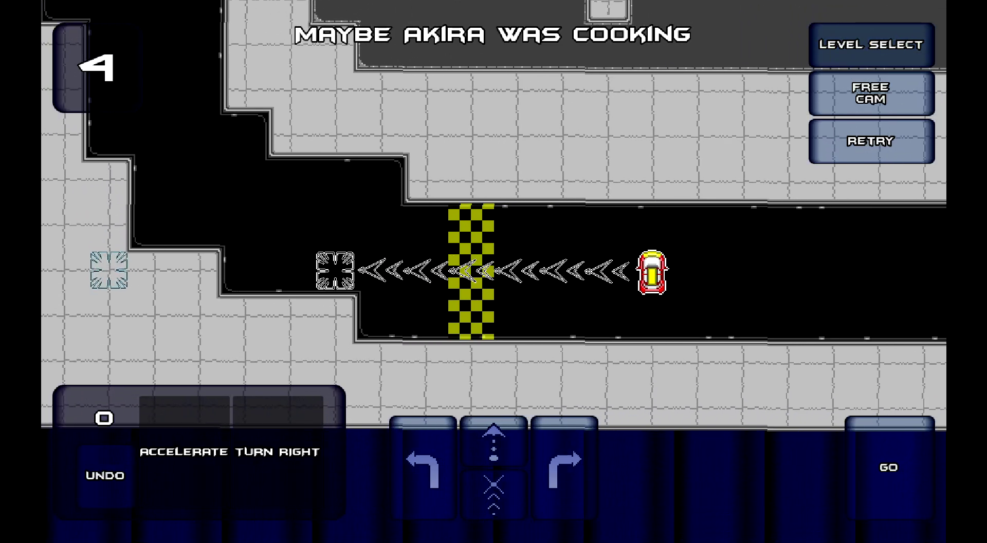 Free cam: Control the camera with arrow keys when enabled, otherwise the camera follows the car.